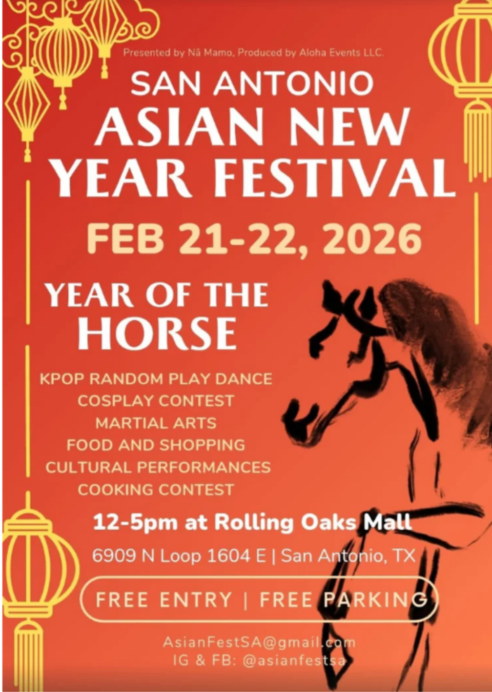 | SA Asian New Year Festival | Feb 21st-22nd | Rolling Oaks Mall |